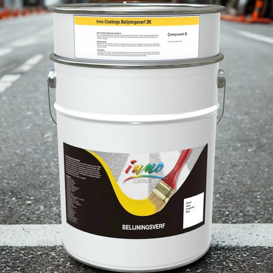 Belijningsverf kan op verzoek worden voorzien van een antislipmiddel. In de meeste gevallen kan de verf direct op de ondergrond aangebracht worden. Bij hele harde dichte ondergronden is het beter eerst een primer aan te brengen. Goed bestand tegen slijtage en extra gevuld met kleurstoffen voor een uitstekende markering en laagdikte. Na menging van de 2 componenten heeft u 1 uur verwerkingstijd. Restanten van gemengde coating niet afsluiten, maar laten indrogen. Het verhardingsproces gaat namelijk gewoon door. Wanneer u het blik toch afsluit, ontstaat er door de chemische reactie van de 2-componenten te veel druk en kan het openbarsten.