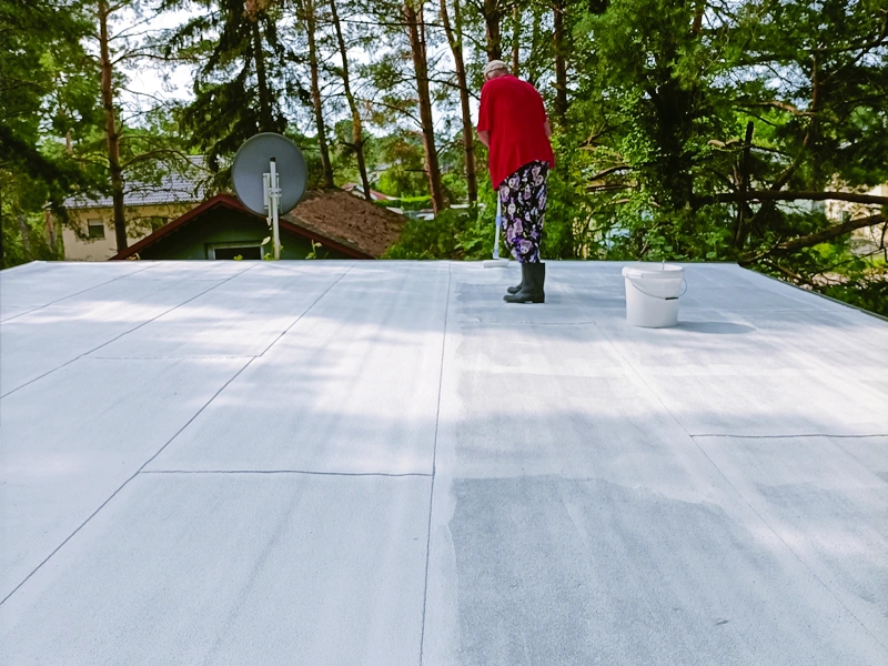 Ted heeft een zomerhuisje in Duitsland waar de temparatuur binnen zomers behoorlijk oploopt. Het platte dak was voorzien van bitumen en lag er al wat jaartjes op. Ted kwam met de vraag of dat ook voor zijn toch wel wat oudere dak de levensduur zou verlengen en de binnen temperatuur zou kunnen verminderen. Uiteraard is het de moeite waard om een wat oudere bitumendak te voorzien van witte warmtewerende dakcoating, zolang er geen lekkage is of veel losse delen. Wij hebben de klant voorzien van uitvoerige informatie en tips voor het aanbrengen, en natuurlijk gaat ook voor dit bitumen dak de temperatuur omlaag en woongenot omhoog.