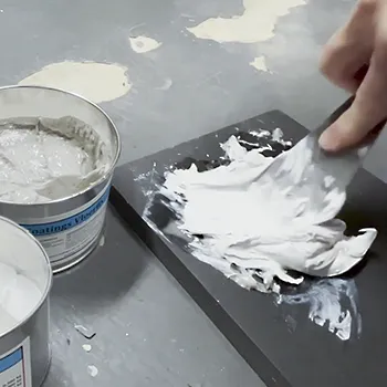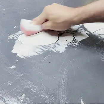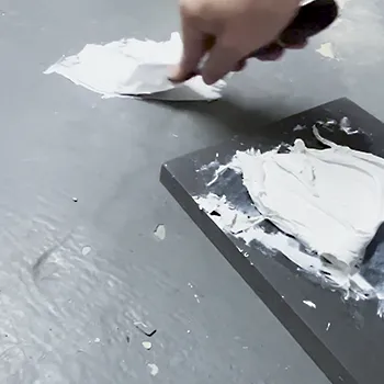 Meng vervolgens de Vloerfix componenten A en B in dezelfde verhouding tot een egale licht grijze massa.